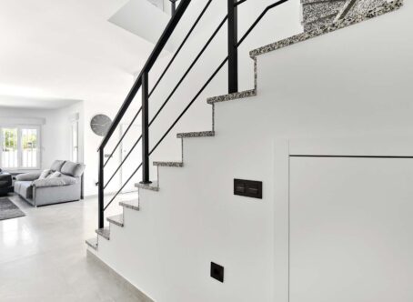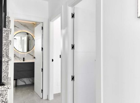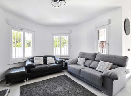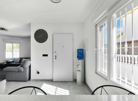 Fully refurbished and immaculately presented 3 bedroom, 2 bathroom detached villa with private swimming pool, located within walking distance of all amenities, including two supermarkets, in the highly sought-after village of Pinar de Campoverde. Set on a quiet street surrounded by greenery, this stunning home is just 10km from the blue-flag beaches of Torre de la Horadada and Mil Palmeras. Upon entering the plot, you are welcomed by a beautifully re-tiled, low-maintenance garden featuring a private swimming pool and ample space for sunbathing and dining. A few steps lead up to a raised terrace with a sun awning and the main entrance to the property. The front door opens into a bright and spacious open-plan living and dining room with air conditioning and a stylish feature wall. The modern, well-designed kitchen sits to the rear of the dining area and is separated by a breakfast bar. It offers generous storage and high-quality finishes throughout. A hallway from the living area leads to two double ground-floor bedrooms, both good-sized rooms with built-in wardrobes and newly installed hot/cold air conditioning units. At the end of the hallway is a beautifully modernised family bathroom with a spacious walk-in shower. Internal stairs lead from the living area to the first floor. At the top of the stairs you will find a large, custom-designed walk-in wardrobe and dressing room created by the current owners. Adjacent is the second family bathroom, also featuring a large walk-in shower. Completing this level is the master bedroom, which benefits from hot/cold air conditioning and patio doors opening onto a private roof terrace with lovely views over the surrounding countryside. Outside, the plot offers everything needed for enjoying the Mediterranean lifestyle: a private swimming pool, off-street parking via an electric gate, a solar shower, and a fantastic fully equipped outdoor kitchen and bar - perfect for entertaining family and friends. The outdoor kitchen has been thoughtfully designed with ample storage, sink, hob, and closing panels to secure it when not in use. The property also boasts 13 recently installed solar panels, significantly reducing running costs. This exceptional villa has been completely refurbished from top to bottom, including new electrics, new internal and external flooring, new bathrooms, modern kitchen, UPVC windows, lighting, air conditioning, entrance gates, internal doors, and front door. The entire property has been freshly painted inside and out. All renovation work has been undertaken to a very high standard using top-quality materials throughout. This is a truly key-ready home with outstanding features and an unbeatable location. Don’t miss out - contact us today to arrange your viewing.