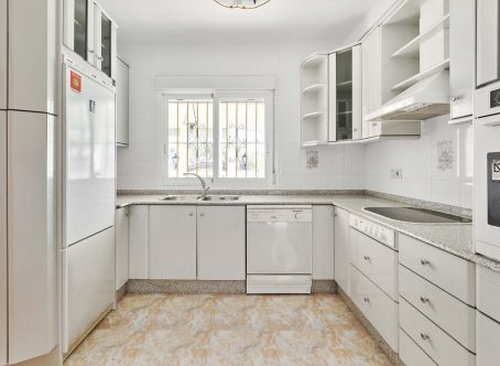 Rare opportunity to purchase this exceptionally large 7 bedroom, 4 bathroom detached villa on a generous 992m² plot, complete with private swimming pool and stunning sea views.Located in the pretty, green village of Pinar de Campoverde, the villa sits on a quiet road within walking distance of the village centre and its wide range of amenities, and just 10km from the blue-flag beaches of Torre de la Horadada and Mil Palmeras. Entering the property via the pedestrian gate, a staircase leads up to a bright glazed sunroom and the main floor of the villa. This level features a spacious living room with fireplace, a good-sized separate kitchen with pantry, two family bathrooms and four double bedrooms, two of which include built-in wardrobes. The layout on this floor is very flexible and could easily be reconfigured to create larger bedrooms or an open-plan living space if desired. Internal stairs lead to the first floor, designed as an independent guest area. Here you will find a comfortable living room, a semi open-plan kitchen, a family bathroom and three double bedrooms. A sunroom on this level opens onto a large open terrace with brick-built BBQ and breathtaking sea views. External stairs from the terrace provide direct access down to the pool area. The villa also benefits from a substantial underbuild, accessible either from inside the house or via a large garage door reached through double gates at the front of the property. This level includes a bathroom, small kitchen, utility room, two smaller rooms and one large open space. Completely adaptable, this area offers huge potential - additional guest bedrooms, games or entertainment rooms, workshop, gym, or secure storage for bikes or vehicles. Outside, the property continues to impress with a large private swimming pool surrounded by ample terracing for sunbathing. Mature brick-built planters filled with established plants and fruit trees add colour and greenery. A spacious closed summer kitchen and lounge provides the perfect setting for large family gatherings, easily accommodating a dining table and multiple sofas. There is also a second closed outdoor kitchen next to a brick BBQ and traditional bread/pizza oven, as well as a wine cellar accessed via steps behind the main summer kitchen. A long driveway leads to a closed and insulated aluminium garage accessed via a large electric sliding gate. The garage is divided into two sections, each with space for a car. This extensive villa is packed with extras including solar panels, oil central heating, air conditioning, sun awnings, multiple storage rooms, a covered terrace with stone seating, outdoor shower, poolside WC and even a stairlift for ease of access. With its exceptional space, flexible layout and wide range of indoor and outdoor living areas, this villa is ideal for large families, visiting guests or anyone looking for a versatile home that can be customised to suit their needs. Viewing is highly recommended.