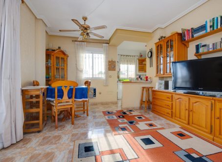 Independent Villa with Private Pool Near La Zenia Boulevard Location: La Zenia, Orihuela Costa Overview This well-maintained, sun-filled independent villa is located in one of the most desirable areas of Orihuela Costa, just a short stroll from La Zenia Boulevard shopping center. Set on a generous 250 m² plot, the property features a beautiful private pool and BBQ area, with potential for further landscaping or expansion, such as adding an additional pool like neighboring homes. Accommodation The villa is intelligently designed with two fully independent living areas, ideal for multi-generational living, guests, or rental income. Main Floor: Spacious, light-filled porch overlooking the garden and pool Open-plan dining and living area Fully equipped kitchen 2 bedrooms 2 bathrooms Basement Unit: Enclosed garage Independent one-bedroom apartment Bathroom with shower Open-plan living area with kitchen Exterior windows providing natural light Solarium Level: Small bedroom Private bathroom Exclusive-use sun terrace with panoramic views Features & Amenities Private pool and BBQ area Central heating throughout Street-level access via Calle Hita Close to shops, restaurants, and essential services Ready for immediate occupancy or investment Location Advantages Walking distance to La Zenia Boulevard Easy access to beaches and Orihuela Costa amenities Vibrant, safe, and convenient neighborhood