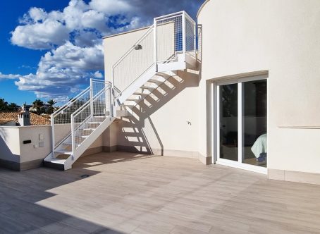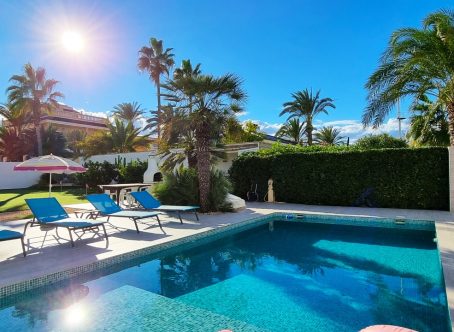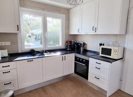 A newly renovated 4 bed 3 bath detached villa with a private swimming pool located just 100m from the beach in Playa Flamenca, Costa Blanca South. This property is offered for sale in very good condition as it has been renovated, sold furnished & very briefly consists of the following:- On the first floor there is a lounge/diner with hot and cold A/C, open plan kitchen, 3 x bedrooms & 2 x shower rooms. On the 1st floor is the main large double bedroom, shower room, large balcony & a private rooftop solarium. Outisde there is a large garden with a private swimming pool, outdoor kitchen with a barbecue area, chip and putting green, tool shed & off road parking. The beach is literally at the end of the road, just a 1 minute walk & local bars & restaurants are all just a short walk away. Murcia Corvera airport is a 35 minute drive & Alicante airport is 50 minutes drive.