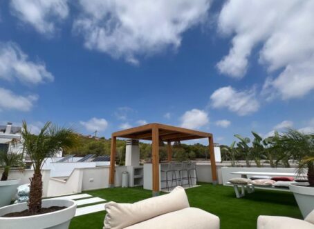 luxury villa in San Miguel De Salinas. This luxurious home boasts no less than 4 bedrooms and 3 bathrooms. The property is south-east facing and enjoys plenty of natural light thanks to the open spaces and large windows.On the ground floor, the villa has a spacious open-plan living and dining area with modern kitchen fully equipped with high-quality materials and appliances, as well as a quooker. There are 3 bedrooms and one en -suite with an en-suite bathroom. The second bathroom is on the same floor with the same high-quality finishes. Underfloor heating is provided in the living room, kitchen and all bathrooms. The villa has all kinds of extras: an alarm system, cameras, air conditioning, fly screens and electric shutters.Downstairs there is one bedroom with en -suite bathroom, which also offers the possibility to make 3 more bedrooms. These rooms are now used as a gym with full professional equipment. A laundry with worktop, a large storage room and a desk.The garden with swimming pool has large terraces where you can place garden furniture for outdoor dining and a barbecue area. The large solarium has a full outdoor kitchen with cold and hot water and a bar where you can enjoy the fantastic views with your friends and family. The villa is equipped with new solar panels, making it an eco-friendly and sustainable option for buyers interested in renewable energy.In short, this modern property in one of the Costa Blanca's most exclusive areas is a unique opportunity not to be missed. It offers a great quality of life and the opportunity to enjoy the best amenities, climate and natural beauty of this part of Spain.Interested buyers should act quickly to ensure they don't miss this opportunity.