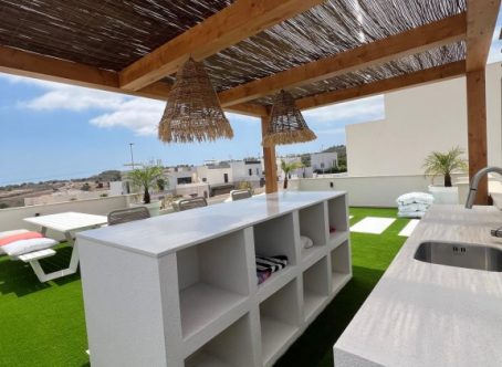 luxury villa in San Miguel De Salinas. This luxurious home boasts no less than 4 bedrooms and 3 bathrooms. The property is south-east facing and enjoys plenty of natural light thanks to the open spaces and large windows.On the ground floor, the villa has a spacious open-plan living and dining area with modern kitchen fully equipped with high-quality materials and appliances, as well as a quooker. There are 3 bedrooms and one en -suite with an en-suite bathroom. The second bathroom is on the same floor with the same high-quality finishes. Underfloor heating is provided in the living room, kitchen and all bathrooms. The villa has all kinds of extras: an alarm system, cameras, air conditioning, fly screens and electric shutters.Downstairs there is one bedroom with en -suite bathroom, which also offers the possibility to make 3 more bedrooms. These rooms are now used as a gym with full professional equipment. A laundry with worktop, a large storage room and a desk.The garden with swimming pool has large terraces where you can place garden furniture for outdoor dining and a barbecue area. The large solarium has a full outdoor kitchen with cold and hot water and a bar where you can enjoy the fantastic views with your friends and family. The villa is equipped with new solar panels, making it an eco-friendly and sustainable option for buyers interested in renewable energy.In short, this modern property in one of the Costa Blanca's most exclusive areas is a unique opportunity not to be missed. It offers a great quality of life and the opportunity to enjoy the best amenities, climate and natural beauty of this part of Spain.Interested buyers should act quickly to ensure they don't miss this opportunity.