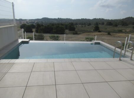 5 bedroom villa with guesthouse. Beautiful ready-to-live villa with completely separate guesthouse. This with beautiful open views over the salt lakes and the Mediterranean Sea. Spacious furnished villa with 3 bedrooms and fitted wardrobes, 2 bathrooms and separate guest toilet, fully equipped kitchen, private swimming pool, covered terrace, air conditioning, intercom, roof terrace. At the front of the house you have your own parking space which offers enough space for 2 cars. This parking lot is closed with an electric gate. The many glass areas and large sliding windows, which not only provide a lot of natural light, make it seem as if the indoor and outdoor space form one whole. In the building you will find a fully autonomous guesthouse with separate entrance, a fully equipped kitchen, a living room and dining room, 2 spacious bedrooms with fitted wardrobes and both with an en-suite bathroom and a storage/laundry room These villas are located in San Miguel de Salinas. Located 10 minutes drive from the beaches of Punta Prima, Playa Flamenca, Cabo Roig and Campoamor. Close to the golf clubs of Las Ramblas Golf, Villamartin Golf, Las Colinas Golf & Country Club and Lomas De Campoamor Golf as well as close to supermarkets, restaurants and the shopping center of La Zenia Boulevard.