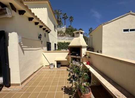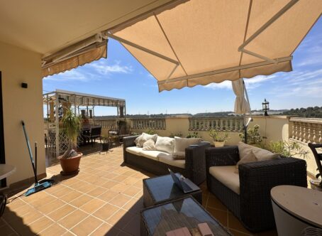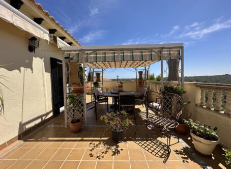 Immaculate villa for sale located with elevated, front-line views located at Las Ramblas golf resort. This impressive south facing property was designed so that every room boasts spectacular views across the golf course and pine forrest. On the main level of the property is a huge living room with seperate television and dining areas along with a guest toilet. There is an impressive fully equipped kitchen with vaulted ceiling and a staircase leading to an additional chill out area and a private office. From the living room there is access to a very sunny terrace, purpose built bbq and outdoor dining area with again more breathtaking views of the golf course. An internal staircase leads down to the master bedroom which had a private sun terrace, dressing room and double bathroom with a shower and bathtub. There are two additional guest bedrooms and a guest bathroom. The property also has a second lounge and living area with kitchen, bathroom and even a cocktail bar with direct access to the swimming pool and sunbathing deck. The property has been finished to a high quality and finished with many, many extras including private garage, air-conditioning, two fireplaces, mosquito nets, electric gates and alarm system.