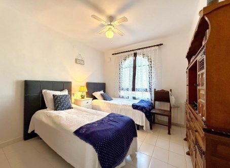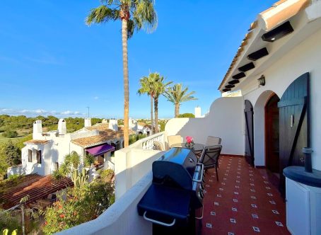 This traditional Spanish-style villa is presented in excellent condition and offers approximately 150 m² of built space including terraces. The property has been meticulously maintained and continuously upgraded by the current owner since 2013, resulting in a comfortable and well-appointed home. The ground floor comprises three bedrooms, two of which benefit from en-suite bathrooms, providing flexible accommodation for family and guests. On the upper level, the villa features a bright and inviting living and dining area, a spacious fully fitted kitchen, and a guest toilet. A highlight of the property is the solarium, which offers a relaxed chill-out area with open views across the surrounding area, including both the sea and the Villamartin Golf Course. Additional outdoor spaces include an east-facing breakfast terrace, ideal for morning sun, and a balcony overlooking the golf course with impressive open views. The villa is equipped with air conditioning and gas-fuelled central heating throughout, ensuring year-round comfort. It is sold fully furnished and equipped, allowing for immediate enjoyment. A project for a communal swimming pool is scheduled to be voted on at the owners’ community Annual General Meeting in March 2026, offering potential future added value.This well-located and thoughtfully maintained villa represents an excellent opportunity in the sought-after Villamartin area.