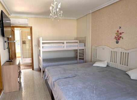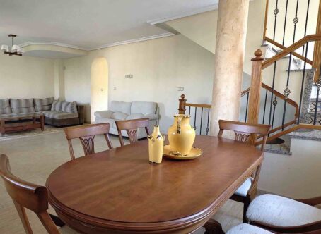 A 4 bed 2 bath detached Zodiaco style villa with views to the communal swimming pool located in PAU 26, Villamartin, Costa Blanca. This property is offered for sale in very good condition, sold furnished & very briefly consists of the following :- On the ground floor there is a very spacious lounge/diner with a feature fire place, large open plan fully fitted kitchen and 1 x family bathroom. On the first floor there is a large family bathroom and 2 x double bedrooms with fitted wardrobes, front & rear balconies & a private rooftop solarium. There is a large under build with a large lounge & 2 x bedrooms. Outside there is a low maintenance garden with a front terrace, driveway, communal swimming pool & much more. The Villamartin Plaza with numerous bars, shops & restaurants is just a few minutes drive away as are 3 golf courses. La Zenia & Playa Flamenca beaches are both less than 10 minutes drive as is the Zenia Boulevard shopping mall. It is around 50 minutes drive to Alicante airport.
