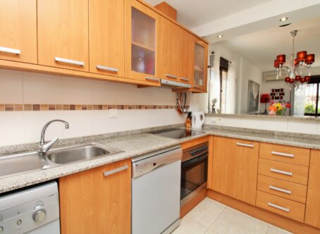 Set on the largest private plot in the entire urbanisation (240m2), this beautifully maintained Mediterranean-style detached 3 bedroom villa is located in the sought-after Res. El Palmeral/Illios development in Pau 8, Villamartin. The property enjoys a prime position within the community, just a short stroll from the attractive communal pool.The ground floor offers a bright and open-plan lounge-dining area, a separate fully fitted kitchen, a generously sized double bedroom with fitted wardrobes, and a bathroom complete with a walk-in shower. Upstairs, you'll find two further double bedrooms, both with fitted wardrobes and direct access to a spacious South-facing balcony boasting sea views. One of the upstairs bedrooms also benefits from an additional private balcony. A well-appointed family bathroom completes the upper floor. Outside, the villa features an abundance of outdoor space, including a raised terrace, ideal for enjoying the Mediterranean climate. The home is sold fully furnished, including white goods and air-conditioning, plus solar water heating, offering a move-in ready opportunity.Conveniently located within walking distance of the vibrant Villamartin Plaza and golf course, the property is close to a wide range of amenities including shops, bars, and restaurants. The beautiful Blue Flag beaches of the Orihuela Costa and the renowned Zenia Boulevard shopping centre are just a 10-minute drive away.This is a rare opportunity to acquire a detached villa in a superb location – perfect for permanent living or as a holiday home.