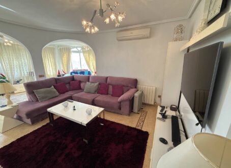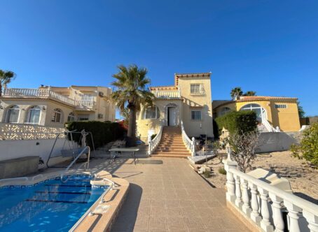 3-Bed Detached Villa with Private Pool in Villamartin This charming 3-bedroom, 3-bathroom detached villa is located in El Presidente, Villamartin, Costa Blanca South. Offered in good condition, it is ideal for full-time living, holidays, or rental investment. The ground floor features a spacious lounge/diner with hot and cold air conditioning, a separate kitchen with utility area, one double bedroom with fitted wardrobes, and a shower room. Upstairs, there are two double bedrooms, a shower room, a family bathroom, and a large balcony. Outside, enjoy a private swimming pool, extensive outdoor space for entertaining or sunbathing, covered off-road parking, and more. Conveniently located within walking distance of local amenities, just 5 minutes by car to La Zenia Beach, four nearby golf courses, and 50 minutes from Alicante airport.