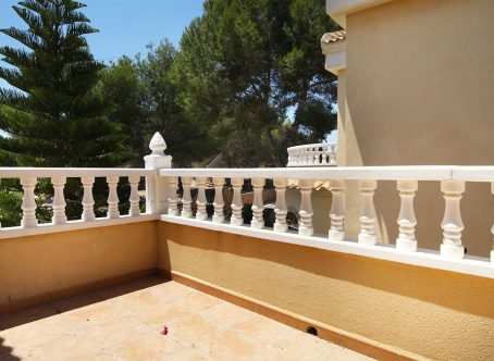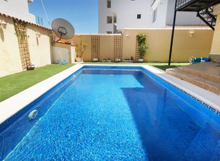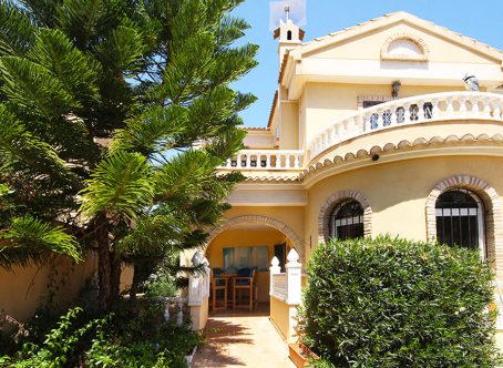 A South facing 4 bed 2.5 bath detached villa with a private swimming pool located in Las Filipinas, Villamartin, Costa Blanca. This lovely property is offered for sale in very good condition, sold part furnished & very briefly consists of the following :- On the ground floor there is a lounge/diner with hot and cold A/C and wooden beamed ceilings, open plan fully fitted kitchen, 1 x double bedroom with fitted wardrobes & 1 x shower room. On the 1st floor there are 2 x large double bedrooms both with fitted wardrobes & private balconies & 1 x family bathroom. Outside there is a front terrace, garden area with a private swimming pool & much much more. There is also a large under build with a separate apartment with a kitchen area that has an island with seating, lounge, bedroom & a large bathroom with bath and walk in shower. This property is located just a short walk to all amenities, 5 minutes by car to La Zenia beach or you can hop on the local bus, Less than 5 minutes by car to 4 golf courses & is 50 minutes to Alicante airport.