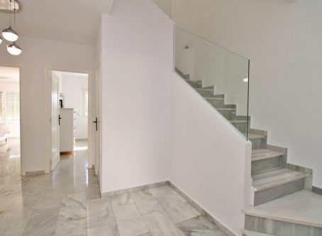 This exceptional 3-bedroom, 2-bathroom detached villa occupies a prime frontline position on the prestigious Las Ramblas Golf Resort, offering breathtaking views over the fairways, surrounding countryside, and the Mediterranean. Ideally located, the villa is just a five-minute stroll from the clubhouse, complete with restaurant and driving range, and close to the popular La Fuente commercial centre, offering a wide selection of bars, shops, and restaurants. The award-winning blue flag beaches of Campoamor and Cabo Roig are less than a ten-minute drive away. Recently refurbished to an impeccable standard, the main level features a bright and spacious living area with dining zone, a separate fully fitted kitchen, and a convenient utility room. Two sun terraces provide the perfect spots to relax and enjoy the views, with an exterior staircase leading up to a private roof solarium. The lower level hosts the master bedroom with ensuite bathroom, offering direct access to the terrace and garden, along with two further generous double bedrooms and a contemporary family bathroom. All bedrooms come with fitted wardrobes. Designed for year-round outdoor living, the property boasts a private swimming pool with a shaded dining area ideal for entertaining, multiple sun terraces, and a mature front garden with established trees and shrubs. Additional features include hot and cold air conditioning, a log burner, private garage, and access to the communal swimming pools. Sold fully furnished and ready to move in, this villa represents a rare opportunity to own one of the best-positioned properties on Las Ramblas Golf Resort.