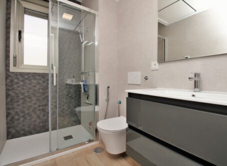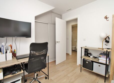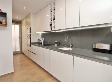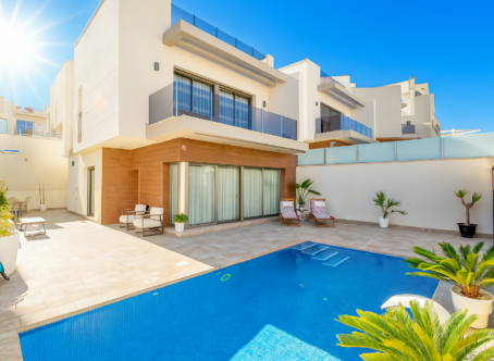 This luxurious and modern 3 bedroom, 3 bathroom detached villa is located in the Pau 26 area of Villamartin. Completed in 2023, this beautiful villa offers a private swimming pool, off-road parking with large L shape terrace, a front balcony, and a massive roof solarium offering views of the sea, and the Torrevieja salt lakes. The ground floor comprises of a bright and airy lounge-dining area with a bespoke modern kitchen with built-in appliances (oven, microwave, dishwasher, fridge-freezer...), a downstairs bedroom with fitted wardrobes (currently used as a study/2nd lounge area), and a downstairs bathroom with walk-in shower. Large sliding doors from the living area takes you directly to the pool area. Upstairs there are 2 double bedrooms with fitted wardrobes, both of them offering en-suite bathrooms with walk-in showers, plus access to the front balcony. From the landing area, you can access the massive roof solarium, offering great views of the Torrevieja salt lakes, sea, and surrounding areas. The property is sold with high quality furniture, white goods, and benefits from other extras including; underfloor heating in all bathrooms, ducted air-conditioning throughout, electric blinds, LED lighting, and a solar panel for hot water. Located just 1km from an ALDI supermarket, and the Via Park III commercial centre, offering a range of bars, restaurants, and other services including a pharmacy. The Villamartin Plaza and golf course is just a short drive away, along with the blue flag beaches of the Orihuela Costa, and the popular Zenia Boulevard shopping mall.
