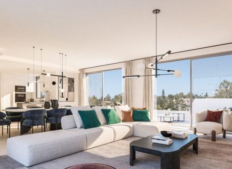 New Development: Prices from 650,000 € to 1,450,000 €. [Beds: 2 - 3] [Baths: 2 - 3] [Built size: 103.00 m2 - 200.00 m2] A spectacular project of 34 amazing apartments and penthouses, of 2, 3 and 4 bedrooms, in a perfect location, for you to enjoy the Mediterranean lifestyle. This magnificent 4 bedrooms duplex welcomes us in a superb entrance hall that gives access to the generously sized living room connected with a modern open plan kitchen that have been superbly equipped with top-of-the-line appliances, on this level there are 2 bedrooms and in the upper level there are another 2 bedrooms en suite. The terrace of the property enjoys beautiful views over the Guadalmina golf course. The urbanization will have pleasant communal spaces such as a swimming pool, landscaped gardens, Co-Working space and fitness area. The complex, which will be completely gated, will also have permanent surveillance cameras and concierge service. In addition, this magnificent project is located within a short distance from San Pedro de Alcántara, in Marbella, Welcome to your New Home!