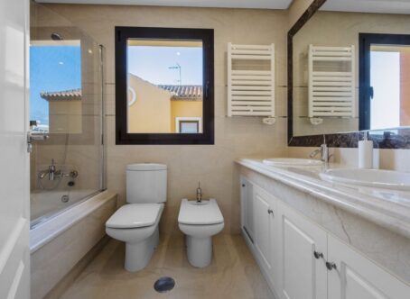 New Development: Prices from 756,413 € to 977,500 €. [Beds: 3 - 3] [Baths: 2 - 3] [Built size: 170.00 m2 - 283.00 m2] IMPORTANT: Some of the photos of the properties you see furnished are only examples. Semi-detached villa in Estepona Description A semi-detached villa for sale with 4 bedrooms and 4 bathrooms. Oriented North West with frontal views of the golf course and the mountains. A property in Estepona which offers very bright rooms that guarantees its maximum comfort and use of space. With its semi-covered terraces and great views over the golf course, the lake and the sea. Oriented South. A semi-detached villa for sale with an excellent level of quality finishes including air conditioner and a fully equiped kitchen. With an extra large space of a basement of the same dimensions as the ground floor and with natural light. Extra Description A property for sale located at a strategic location due to its proximity to all amenities and more. To the city of Estepona at 3 min by car, near the new Hospital of Estepona, next to the Diocesan Juan XXIII School, close to supermarkets Mercadona & Aldi, restaurants and at 1 km 200 distance from the beach with its promenades and beach bars and Clubs. Furthermore, this property is located in the middle of the Azata Golf course and other nearby famous golf courses such as Valle Romano and Casares and Finca de Casares. In a very quiet, serene and green area. With great views surrounded by the mountain from one side, the sea from another and the golf course all around. A property also located in an ideal and unique complex composed of detached and semi detached villas to live all year around and to enjoy Golf playing, the beachside and a city life style with its cultural, leisure and sports events.