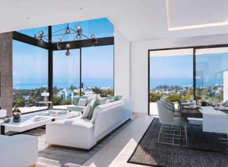 Spectacular home offering the most beautiful views of the nearby Mediterranean and the Costa del Sol from a unique location between the sea and the mountains. Located in the cosmopolitan city of Marbella, the idea of this project arose, with the sole objective of creating a dream paradise to call home. It’s not just a house; it’s more a lifestyle project for your future. The façades, aesthetics, the double height living rooms, the open spaces and new perspectives offer a sense of space, where you can make total use of the available space in a much richer and elegant way. It's contruction on different levels, for a perfect adaptation to the slope of the land, allows you to enjoy the marvellous views of the Mediterranean sea from every single home. The development has large gardens, an outdoor communal swimming pool, gym, sauna, turkish bath, and massage room. The house has a solarium and a private swimming pool on this rooftop terrace, a perfect spot from which you can admire the views of Marbella, the sea and the mountains. The white colour and modern architecture show the most beautiful aspects of the essence of the Mediterranean, both on the outside and inside of the property. The house has 4 bedrooms, and is built on three floors distributed in the basement, ground floor, first floor and solarium with swimming pool. The property has an underground garage to avoid traffic and vehicles within the development. The interior is designed with a high level of finish with spacious rooms and large windows, bringing light and nature into your home, making a fusion between the exterior and interior. There is also possibility of having 5 bedrooms. The property is finished and ready tobe occupied.