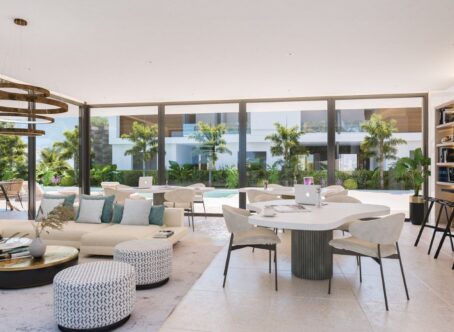 Spectacular home offering the most beautiful views of the nearby Mediterranean and the Costa del Sol from a unique location between the sea and the mountains. Located in the cosmopolitan city of Marbella, the idea of this project arose, with the sole objective of creating a dream paradise to call home. It’s not just a house; it’s more a lifestyle project for your future. The façades, aesthetics, the double height living rooms, the open spaces and new perspectives offer a sense of space, where you can make total use of the available space in a much richer and elegant way. It's contruction on different levels, for a perfect adaptation to the slope of the land, allows you to enjoy the marvellous views of the Mediterranean sea from every single home. The development has large gardens, an outdoor communal swimming pool, gym, sauna, turkish bath, and massage room. The house has a solarium and a private swimming pool on this rooftop terrace, a perfect spot from which you can admire the views of Marbella, the sea and the mountains. The white colour and modern architecture show the most beautiful aspects of the essence of the Mediterranean, both on the outside and inside of the property. The house has 4 bedrooms, and is built on three floors distributed in the basement, ground floor, first floor and solarium with swimming pool. The property has an underground garage to avoid traffic and vehicles within the development. The interior is designed with a high level of finish with spacious rooms and large windows, bringing light and nature into your home, making a fusion between the exterior and interior. There is also possibility of having 5 bedrooms. The property is finished and ready tobe occupied.