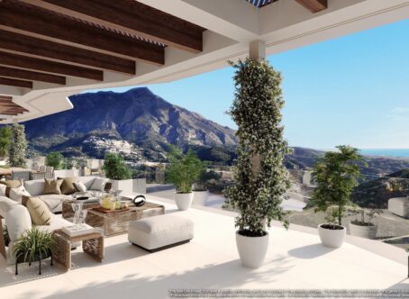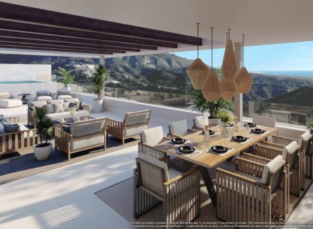 New development with the utmost best views along the coast. If you have ever dreamt of having a good view you must come and see these views. Nothing comparable ! Modern architecture, contemporary finishes, large terraces makes this top development very desirable. Luxurious top floor corner apartment, with an enviable location in the gated community of Mimosas the sixth project of Real de La Quinta Residential Country Club Resort. Surrounded by the beautiful Sierra de las Nieves National Park with panoramic views of the Mediterranean coast, Lake Istán and the incredible views of La Concha mountain. In Benahavis-Marbella, 10 minutes by car from the golf valley, 15 minutes from the beaches and Puerto Banús all this in the same view. The southwest orientation of this property floods the interior spaces with natural light and offers stunning views of the sea and the mountains. The generous terraces and large solarium maximize the use of the outdoor spaces, serving as the ideal place to entertain or simply kick back and relax next to the private pool. Designed to maximize comfort and style, with the best qualities an open plan design, this apartment offers a spacious living room, with a very large window (floor to ceiling), open Bulthaup brand kitchen fully equipped with Miele appliances, integrated fireplace, separate laundry room, home automation system, underfloor heating, 3 bedrooms, 3 bathrooms and a guest toilet. A wonderful upper floor where the solarium and pool are located, with bathroom and shower, offering impressive views of the sea and the mountains. Including 2 private parking spaces in the community's underground parking and storage room. Taking advantage of the views and the light, the apartments are designed with large windows and they lead out to very large terraces. The urbanisation is set back in the foothills behind the golf valley of Nueva Andalucia but with easy access to all the amenities in the valley and Puerto Banus. Set in a natural environment you will be able to enjoy walks through the neighbouring countryside and live surrounded by peace and tranquility. The estate has 24 hour security, a six hole executive golf course, a clubhouse with gym and wellness center, an artificial lake with an artificial beach, tennis and paddle tennis courts, restaurant at the clubhouse and an equestrian center. There will be several play areas for children and the lake shall have canoes and kayaks. The materials used in the finish of the apartments are top quality and amongst the best you will find in the area.