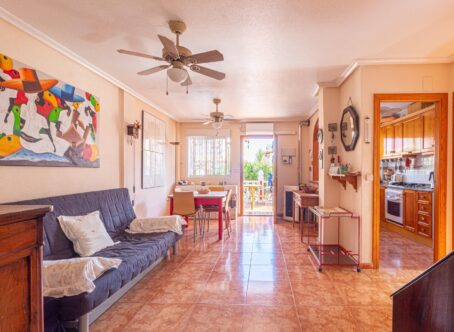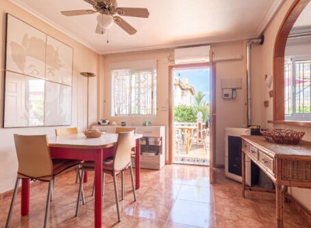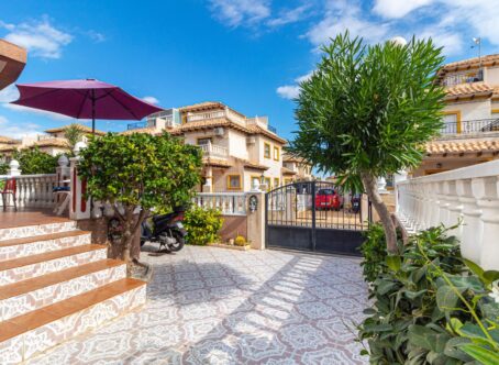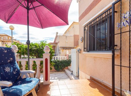 Unique Opportunity in Cabo Roig – Quad House in Residencial Torregolf II Beautiful 3-bedroom, 2-bathroom quad house for sale in a privileged and quiet location, just a short walk from the beach and all amenities. Key Features: 58 m² outdoor space with barbecue, garden porch and lemon tree Ground floor bedroom with bathroom for comfort and privacy Two upstairs bedrooms with private terraces and fitted wardrobes Pellet fireplace, air conditioning and radiators Fully furnished and ready to move in Storage room Communal pool Perfect for year-round living or as a holiday home on the Costa Blanca. Contact us today to arrange a viewing.