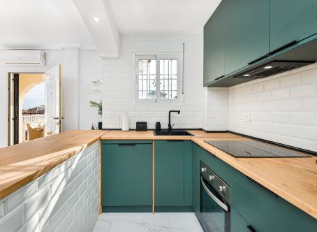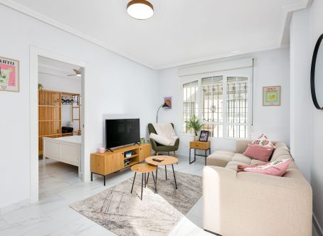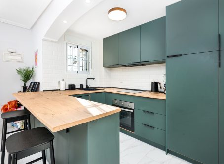 This stunning south-facing quad house offers a perfect blend of modern elegance, comfort, and an unbeatable location in Lomas de Cabo Roig. Ideal for family living, holiday retreats, or investment, the property features three spacious bedrooms, stylish living spaces, and exceptional outdoor areas. The main living area is open plan, seamlessly integrating a modern kitchen with a generous lounge and dining space. Large windows and the front door provide abundant natural light and direct access to the private pool, terrace, and garden. The kitchen has been fully updated with high-quality fixtures and finishes, combining style with functionality. Step outside to your private outdoor oasis, including a pristine swimming pool and sun-drenched solarium offering breathtaking sea and mountain views-perfect for relaxing, sunbathing, or entertaining. The master bedroom features its own balcony for enjoying morning coffee or evening vistas. A handy storage room is included for outdoor equipment and essentials. The house’s layout prioritises comfort and convenience. On the ground floor, a bedroom and bathroom provide easy access for guests or single-level living. Upstairs, two additional bedrooms-including a luxurious master suite with balcony-and a bathroom offer ample space for family or visitors. The expansive rooftop solarium provides panoramic views, ideal for outdoor dining, relaxation, or enjoying the spectacular surroundings. Recently renovated throughout with a fresh, contemporary aesthetic, the property is sold with stylish furnishings included, allowing immediate move-in. Located just 2 km from Campoamor Beach, the quad house is close to sandy shores, restaurants, bars, and supermarkets in Lomas de Cabo Roig, providing convenience and lifestyle appeal. Residents also benefit from access to a communal pool within the community. This property represents an exceptional opportunity for a luxury holiday home, permanent residence, or investment, offering stunning views, modern updates, and a prime location. Early viewing is highly recommended.