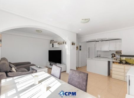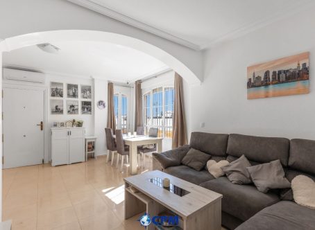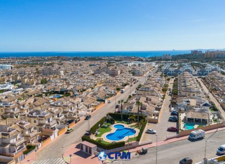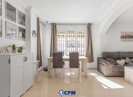 Stunning 2 Bedroom Quad House in Playa Golf, Lomas de Cabo Roig This attractive quad house in Playa Golf, Lomas de Cabo Roig is an excellent opportunity for year-round living or a high-yield investment. Its south-facing orientation and large front terrace make it perfect for enjoying the Mediterranean climate and creating a welcoming outdoor space. Property Layout: Ground Floor: Open-plan design combining the living room, dining area, kitchen, and a full bathroom. This bright and spacious layout is ideal for everyday living and entertaining. First Floor: Two double bedrooms with fitted wardrobes and a spacious family bathroom, offering comfort and practicality. Top Floor: A private solarium with stunning views, perfect for relaxing, sunbathing, or creating your own rooftop retreat. Prime Location: Situated in the popular Cabo Roig area of the Orihuela Costa, this property is just a short drive from golden, unspoilt beaches, luxury villas, and the lively Cabo Roig Strip. Within approximately 650 metres, you’ll find bars, restaurants, cafés, shops, supermarkets, and health centres. Alicante Airport is just 45 minutes away, with Murcia Airport also easily accessible. Additional Features: Built in 2006 with 113 m² of living space 2 bedrooms, 2 bathrooms Terrace and balcony with south-facing views Air conditioning and individual electric heating Access to communal swimming pool and garden Fully equipped with fitted wardrobes and in good condition, ready to move into This property offers a fantastic opportunity for families or investors seeking a move-in-ready home in one of the Costa Blanca’s most sought-after locations.