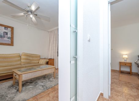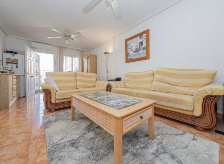 3-Bedroom Quad for Sale in La Regia – Cabo Roig This beautifully presented 3-bedroom, 2-bathroom quad is situated in the sought-after La Regia area of Cabo Roig. In excellent condition and fully key-ready, it is ideal for holidays, permanent living, or investment. Interior Layout Ground Floor: Open-plan living and dining area with a renovated built-in wall display unit Semi-open modern kitchen with American breakfast bar Double bedroom Fully renovated ground-floor bathroom with walk-in shower Spacious under-stairs storage First Floor: Two double bedrooms, both with private balcony terraces Fully renovated bathroom with walk-in shower The villa is part-furnished, with air conditioning, infrared panel heaters, ceiling fans, PVC guttering, and white goods included. Outdoor & Community Features Private terraces and patio garden laid to artificial grass and tiles with new glass panels On-site parking Charming community with communal swimming pool, landscaped gardens, football pitch, and children’s park Location Quiet location within walking distance (under 10 minutes) to the renowned Cabo Roig strip with shops, cafés, bars, restaurants, and supermarkets Sandy Blue Flag beach of La Caleta, Cabo Roig, under 15 minutes’ walk Short drive to Zenia Boulevard Close to numerous first-class golf courses This turnkey villa combines modern comfort, excellent outdoor space, and a prime location in Cabo Roig. Contact us today to arrange a viewing.