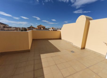 East-Facing 3-Bedroom Quad House in Lo Marabu – Private & Communal Pools, Glazed Terraces & Solarium This attractive east-facing 3-bedroom, 1.5-bathroom quad house is located in the sought-after residential area of Lo Marabu, just a 7-minute walk to a wide selection of bars, restaurants, and two major supermarkets. The vibrant towns of Quesada and Benijófar are only a 5-minute drive away, while the sandy beaches of Costa Blanca South and top golf resorts such as La Finca and La Marquesa are within approximately 10 minutes by car. With a build size of 104m² spread over two floors, this house offers a practical and well-proportioned layout, perfect for holiday use, year-round living, or rental investment. Property Features: 3 double bedrooms on the first floor Master bedroom with built-in wardrobes and glazed balcony Bright lounge/dining room with direct access to a glazed front terrace Separate fitted kitchen 1.5 bathrooms – family bathroom upstairs and guest cloakroom downstairs Spacious private solarium, partially glazed, Tiled garden with private swimming pool Access to a communal swimming pool within the residential complex Off-road parking This house combines a peaceful, east-facing setting with modern glazed terraces, private and communal pools, and excellent access to local amenities, beaches, and golf, making it ideal as a holiday home, permanent residence, or investment property. Additional Benefits: East-facing orientation for morning sun Low-maintenance outdoor space, perfect for entertaining Located in a quiet residential area with amenities within walking distance Great potential for rental income or a lock-up-and-leave holiday home This is a fantastic opportunity to own a versatile property in a prime location on the Costa Blanca South. Whether you're looking for a permanent home in the sun, a holiday retreat, or a smart investment, this villa ticks all the boxes. Contact us today to arrange a viewing or request more information!