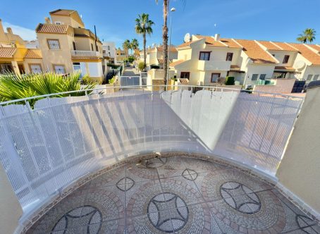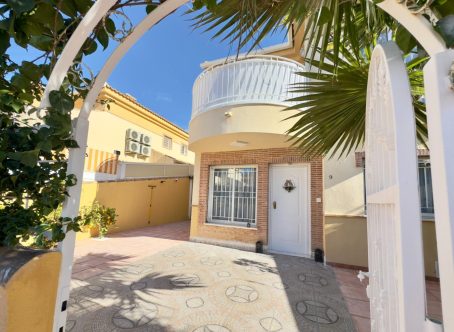 Renovated Quad House in Residencial Amaro, Lo Marabú – Ciudad Quesada This well-maintained quad house with a private entrance is located in the desirable Residencial Amaro complex, set in the peaceful area of Lo Marabú, Ciudad Quesada. With a southwest-facing orientation, the property enjoys excellent natural light throughout the day. The home is distributed over two floors and has been renovated using high-quality materials, offering a comfortable and modern living environment ready for immediate occupation. On the ground floor, the property features a welcoming living room, a custom-built kitchen with integrated cabinetry and pantry, a bedroom, and a bathroom. The upper floor comprises the master bedroom with access to a private balcony of 6.56 m², a further bedroom, and a second bathroom. All bathrooms benefit from underfloor heating, ensuring year-round comfort. The plot measures 98.45 m² and provides private outdoor space ideal for relaxing or outdoor dining. The residential complex offers a well-maintained communal swimming pool surrounded by green areas, perfect for leisure and relaxation. A private parking space (number 9) is included in the price. This property represents an excellent option as a permanent residence, holiday home, or investment in a quiet yet well-connected area of Ciudad Quesada.