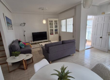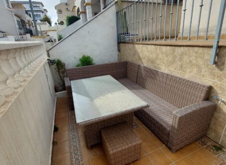 Charming Three-Bedroom House Inside A Gated Urbanization In Los Altos Welcome to your new home in the desirable gated community of Laderas Del Sol in Los Altos, Orihuela Costa! This beautifully presented three-bedroom, two-bathroom terraced house offers the perfect blend of comfort and convenience. Externally to the front you will find a lovely patio with stairs leading to a glazed patio area, perfect for those winter afternoons and also offering additional living space! As you enter, you'll be greeted by a spacious living/dining area filled with natural light, ideal for both relaxation and entertaining. The large kitchen is fully equipped and seamlessly connects to a rear patio/utility area. This home features a convenient layout with one bedroom and a bathroom located downstairs, ideal for guests or those seeking single-level living. Upstairs, you'll find two additional well-sized bedrooms and the main bathroom, ensuring privacy for all. Step outside to your private terrace, perfect for enjoying the sunny Mediterranean climate or al fresco dining. The beautifully landscaped communal gardens surround a stunning swimming pool, offering a serene oasis for residents. Located just a short drive from stunning beaches, local amenities, and vibrant nightlife, this home is perfect for families, retirees, or as a holiday getaway. Don't miss this opportunity to own a slice of paradise in Los Altos. Contact us now to arrange a viewing or video tour! Community fee approx. €215 every 6 months Sum approx. €220 per year