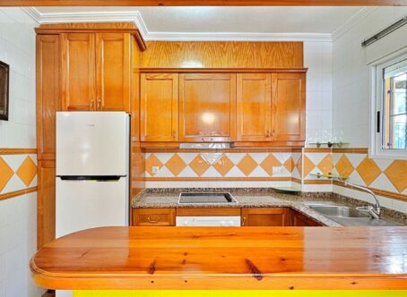 Bright Quad House with Solarium & Communal Pool – Costa Blanca Located in a private residential complex with a communal swimming pool, this charming Quad House offers 86 m² of built space over two floors, with a layout designed for comfort and Mediterranean living. Property Features Spacious living-dining room with access to terrace Open-plan kitchen with breakfast bar, fully equipped 2 double bedrooms with fitted wardrobes (one with private terrace) 1 full bathroom with shower + guest toilet Private solarium (20 m²) with open views 80 m² plot with covered terrace, paved side area & independent street access Sold fully furnished & equipped, move-in ready Community & Location Communal pool with landscaped green areas Family-friendly and peaceful setting Close to supermarkets, restaurants, schools & public transport Perfect as a permanent home, holiday retreat, or rental investment on the Costa Blanca.
