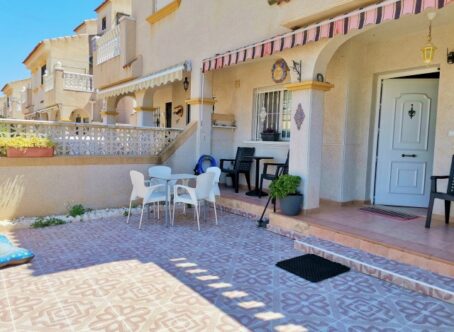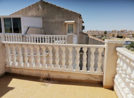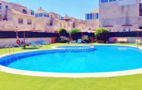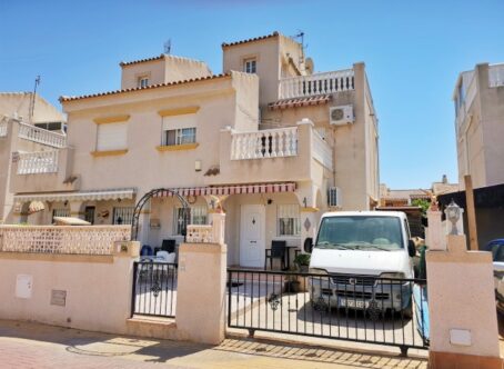 A 2 bed 1.5 bath quad house located in Res Coral, Torrevieja Costa Blanca. This lovely property is offered for sale in good condition & very briefly consists of the following:- On the ground floor there is a lounge/diner, separate fully fitted kitchen, glazed in rear utility area & a W/C. On the 1st floor there are 2 x double bedrooms both with wardrobes, 1 x shower room & a balcony off the main bedroom. There is also a private rooftop solarium. There is a covered front terrace, front garden & a lovely communal swimming pool. Located in a quiet yet accessible area, you’ll enjoy easy access to everything Torrevieja and the Costa Blanca have to offer.