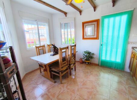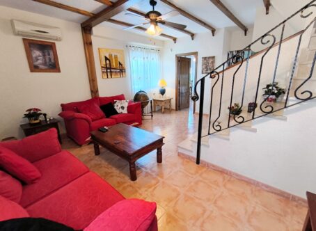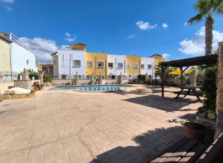 End of Terrace 3 Bedroom Townhouse in Montemar, Algorfa Discover the perfect blend of comfort and convenience in this charming end-of-terrace townhouse located in the desirable Montemar area of Algorfa. This spacious home features a generous lounge and a dining-sized kitchen, ideal for entertaining and everyday living. With three double bedrooms-two on the first floor-there’s plenty of room for family and guests. A convenient shower room on the ground floor and a main bathroom upstairs add to the home’s functionality. Occupying a corner plot, the property benefits from extra privacy and practicality. The beautifully maintained gardens and private off-road parking enhance its appeal, while the sun-drenched terrace is perfect for relaxing or alfresco dining. From the private solarium, enjoy panoramic mountain views and tranquil surroundings. Within walking distance to essential amenities, including La Finca Golf commercial center and Hotel Algorfa, residents can enjoy a variety of dining, leisure, and shopping options. The nearby communal pool offers both sunny and shaded areas for relaxation. Featuring air conditioning and heating for year-round comfort, this well-presented townhouse is ready to move into and enjoy. Don’t miss the chance to make this exceptional property your new home.
