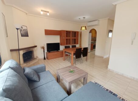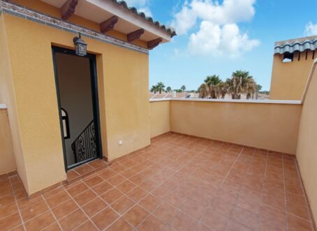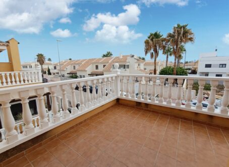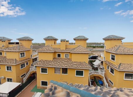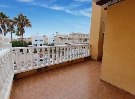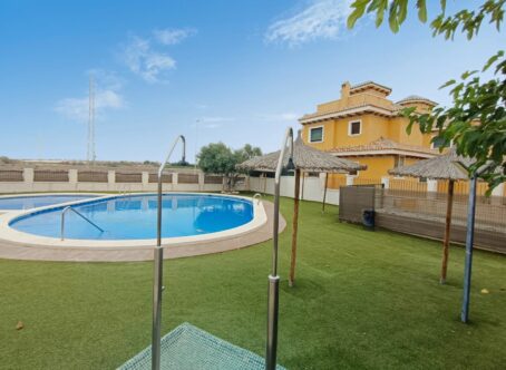 This property is set on a small development on the edge of Lo Marabu, a desirable suburb of ciudad Quesada. You can walk to many bars, restaurants and supermarkets along with being close to the main road to Torrevieja, Guardamar and the AP7 motorway. The property comes with a good sized living and dining area, kitchen with plenty of work space, cupboards, built in oven/hob and extractor along with a useful utility area. All bedrooms are of a good size with built in wardrobes, one being on the ground floor. Also on the ground floor is a useful shower room. Stairs take you down to a large under build which could be used for a variety of purposes. An extra bedroom maybe? Games room, craft room or maybe a home office or small business. Upstairs there are two further bedrooms, again double in size along with fitted wardrobes. A door takes you out onto a terrace, perfect for coffee in the morning. There is also a further staircase up to a private solarium with room for sunbeds. Outside there are low maintenance gardens, a driveway and separate access to the under build/apartment. Residents also have the use of a large communal area featuring child and adult pool along with showers and shaded areas. The house is sold as seen, with furniture and appliances along with a kitchen in the basement. Installed with air conditioning and double glazed windows.