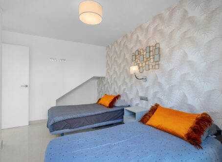 Modern 3-Bedroom Home with Private Pool and Rooftop Terrace in Ciudad Quesada Built in 2018 and located in a peaceful residential area, this corner townhouse offers a smart layout and well-designed indoor and outdoor spaces. With 101 m² of living area on a 184 m² plot, it features three bedrooms, three bathrooms, a basement, and a spacious rooftop terrace. Main Floor: Bright living and dining area Open-plan kitchen with central island One bedroom with built-in wardrobe Full bathroom Laundry area Direct access to garden and private pool Upper Floor: Main bedroom with en-suite bathroom and private terrace Second bedroom adjacent to another full bathroom Connecting hall Basement: Versatile recreational space currently set up with a pool area Rooftop Terrace: Fully equipped outdoor kitchen with direct indoor access Perfect for year-round entertaining and relaxation Outdoor Features: Private pool (3.30 x 6.50 meters) Artificial grass garden On-plot parking Corner position ensures extra natural light and privacy The home is sold fully furnished and includes air conditioning, built-in wardrobes, automatic blinds, mosquito screens, a security system, and a fully equipped kitchen. Ideally suited as a permanent residence or holiday home, it’s close to local amenities and main transport links.