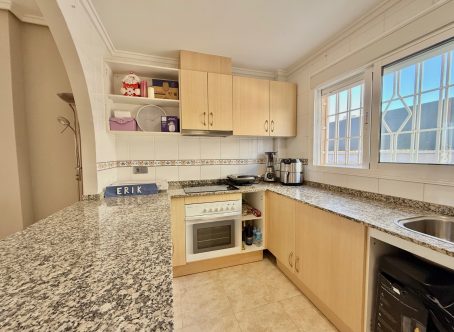Spacious 3-Bedroom, 4-Bathroom Corner Townhouse in Doña Pepa This generous 3-bedroom, 4-bathroom corner townhouse is situated in the highly sought-after area of Doña Pepa, just minutes from the town centre. Located within a secure gated community with a communal pool, this south-west facing home enjoys sunshine throughout the day. The property is semi-detached on a corner plot, offering extra privacy and space. It features two independent living areas, each with its own kitchen, making it ideal for extended family living, guests, or rental potential. The downstairs has been converted into additional living space, while the upper level remains fully separate. The home has been partially renovated, including a modern refurbished kitchen, a renovated bathroom, and a stylish outdoor barbecue area, perfect for entertaining. Multiple balconies provide pleasant outdoor spaces, and the property benefits from private parking. Additional features include: Spacious, well-laid-out interiors with bright, airy rooms House area: 168 m² | Plot: 110 m² | Built: 2004 Ducted air conditioning throughout Solar panels for energy efficiency Partially furnished A versatile and comfortable home in a prime location, offering peace, privacy, and community living while remaining close to all amenities.