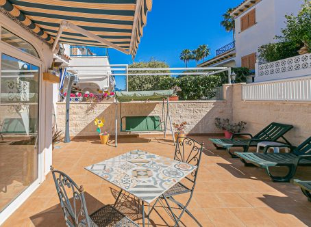 Located within the Riomar III residential complex, this south-facing semi-detached villa enjoys access to a large communal park area and swimming pool. Positioned on a desirable corner plot, the property offers both privacy and additional outdoor space. The home comprises two bedrooms and two full bathrooms, along with an open-plan kitchen and a separate laundry/utility room. The spacious lounge and dining area leads to a glazed terrace, providing extra living space ideal for dining or relaxing throughout the year. Outside, the property sits on a well-sized corner plot with a low-maintenance patio garden and a generous upper terrace, perfect for enjoying the sunny climate. The home is equipped with air conditioning and benefits from both indoor and outdoor storage rooms. The property is sold fully furnished and presented in excellent condition. Riomar III is known for its well-maintained communal gardens and swimming pools. The complex is located in a peaceful neighbourhood with mature trees and green spaces, making it suitable for both year-round living and holiday use. One of the key advantages of this location is its proximity to the beach. The beautiful beaches of Mil Palmeras are just 900 metres away, including Playa de Mil Palmeras, a Blue Flag beach with fine golden sand. Local bars, cafés, shops and other amenities are also within easy reach. Contact us today to arrange a viewing of this well-presented home in an ideal coastal location.