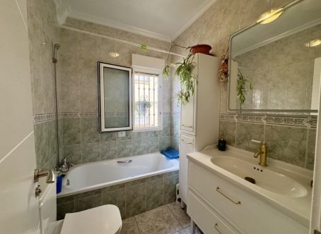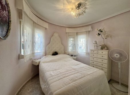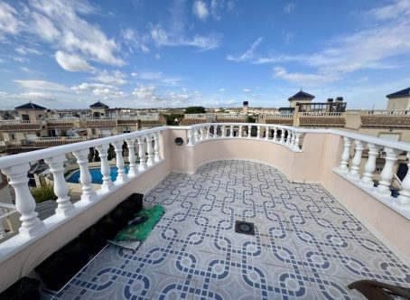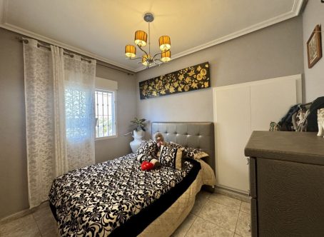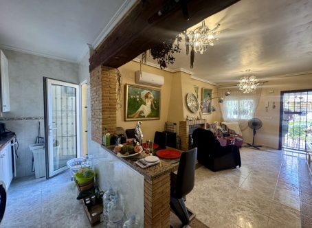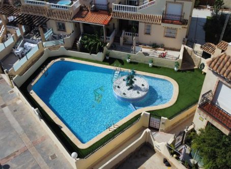 Semi detached house for Sale in Las Chismosas, Playa Flamenca Beautiful south-facing semi detached house for sale, very bright and excellently located within a gated community with a communal swimming pool. The property offers: 2 bedrooms and 1 bathroom on the main floor A third bedroom with its own en-suite bathroom on the upper floor, located on the private solarium and with independent access A spacious terrace, perfect for enjoying the fantastic climate A large private solarium with extra space to relax or welcome guests This is a perfect home for year-round living or as a holiday investment. The area is quiet and convenient, with supermarkets, restaurants, public transport, and the beautiful Orihuela Costa beaches just minutes away. South-facing – maximum natural light and views of the swimming pool This property is just a few minutes walk to local shops, bars, restaurants & around 10 minutes walk to the Saturday market. It is just a few minutes drive to Zenia Boulevard shopping complex & 5 minutes drive to the beach & 50 minutes drive to Alicante airport & 45 minutes to Murcia Corvera airport.