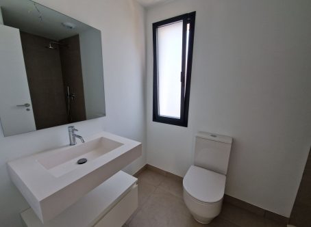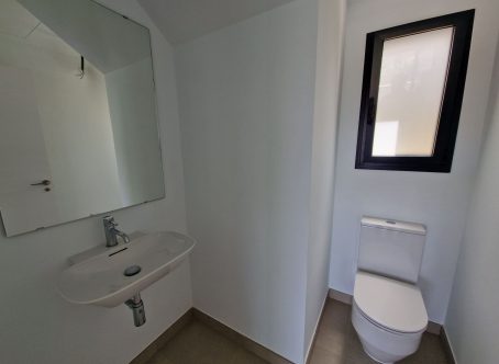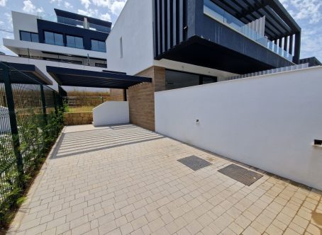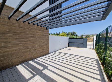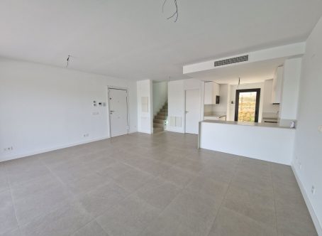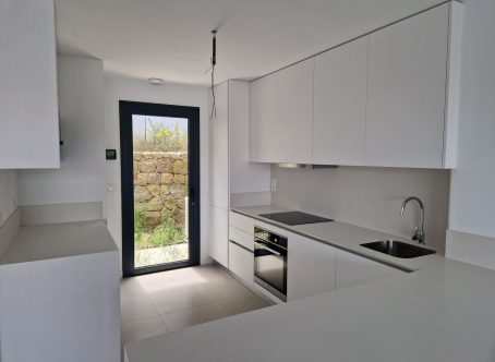 Brand new semi detached villa near Atalaya golf course and within easy reach of Atalaya golf club and El Paraiso golf club. The property faces west and has it's own private parking space within the private plot of the house. One enters a spacious living dining room with open plan kitchen and this whole area flows gently out to a large sunny terrace with views of the surrounding countryside. On this level there is a guest bathroom. Upstairs is the master bedroom with a bedroom ensuite and another bedroom which shares a terrace with the master bedroom. There is a third bedroom which shares a bathroom with the second bedroom. The whole house has underfloor heating and air-conditioning all run with aerotermia energy which is the 21st century form of ecological and cheap energy. The house has aluminium frame windows with double glazed glass and pocelanic floors. The community has a large communal swimming pool. Situated about 2 kms from restaurants and shops, 4 kms from the beach and about 6 kms from San Pedro de Alcantara. Easy access to Marbella town, Puerto Banus, Estepona and all the golf courses and the other amenities along the coast.