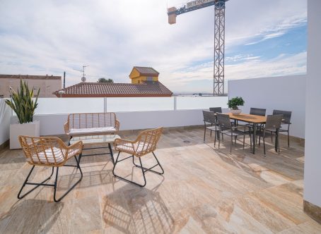 <strong>SPECIAL OFFERS APPLY - contact us for more information. </strong> We are pleased to offer for sale these brand new townhouses with private swimming pools, solarium and parking, for sale in the town of Avileses, approximately 15 minutes drive from the Mar Menor coast. These beautiful homes will be built to an extremely high standard with aircon throughout. Kitchens will have included Balay electrical appliances included (ceramic hob, oven and microwave, extractor, integrated fridge and dishwasher). These wonderful properties comprise open plan living kitchen and dining room with one double bedroom downstairs and separate shower room. Patio door access leads from the lounge and the downstairs bedroom to the front garden area (with parking) and the private swimming pool. Stairs lead to a further two double bedrooms both with fitted wardrobes and access to an upstairs terrace and and an additional staircase to access the roof solarium.
