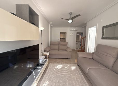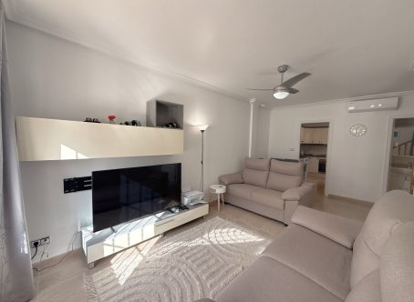 Beachside Townhouse in Vista Mar, Cabo Roig This south-facing townhouse is located in the lovely Vista Mar complex, featuring a fantastic communal pool and landscaped gardens, just 400 metres from the Cabo Roig promenade. Enjoy easy access to the blue flag beach, marina, bars, restaurants, and local amenities. The property has been recently renovated, including fresh paint, modern air conditioning units throughout, and new double glazing. Its sunny south-facing orientation ensures plenty of winter sun, making it perfect for year-round living. Property layout: Ground floor: bright lounge, separate kitchen, one double bedroom, and a bathroom with walk-in shower and WC, plus a sunny front terrace First floor: two double bedrooms, each with a private terrace, and a family bathroom with walk-in shower This townhouse combines modern comfort, excellent location, and proximity to the beach, offering a unique opportunity at an attractive price. Contact us today to arrange a viewing of this fantastic property.