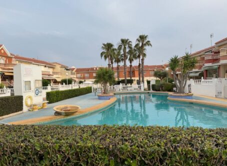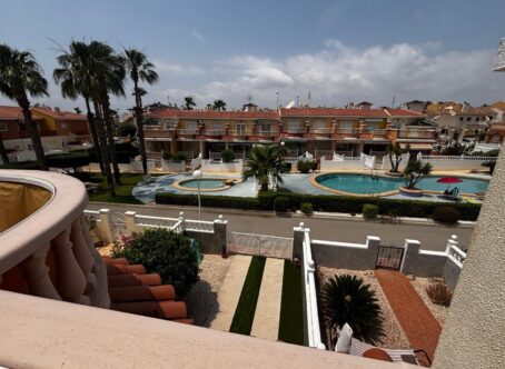 We have a beautiful 3 bedroom 2 bathroom west facing Lola style house for sale in the very popular area of Dona Pepa, part of Ciudad Quesada on the Costa Blanca. It is located close to many amenities including bars, restaurants, supermarkets and the long sandy beaches at Guardamar del Segura are just a 7 minute drive. The property is found inside a well established gated community and overlooks the beautiful swimming pool. The current owner has kept the home maintained to a high standard.The front of the property has a covered terrace with plenty of garden space and drive for car.