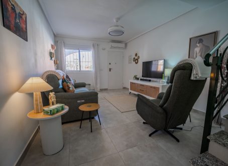 South-Facing Townhouse in Gated Community – Ciudad Quesada Welcome to this beautifully maintained south-facing townhouse, located in a quiet and friendly gated community in the heart of Ciudad Quesada. Offering 82 m² of bright, well-distributed living space, this property perfectly combines comfort, low-maintenance living, and excellent outdoor areas-ideal as a permanent home, holiday retreat, or rental investment on the Costa Blanca. The rear terrace enjoys sun all day, while the front terrace provides additional seating for morning coffee. Residents also have access to two communal pools and landscaped gardens, creating a relaxed Mediterranean lifestyle. Inside, the home features a welcoming lounge with air conditioning and electric radiators, a modern fully fitted kitchen with ample storage, two double bedrooms, one full bathroom plus a guest WC, and recent upgrades including a new boiler and ceiling fans. Community fees are just €356 per year, making this an affordable and attractive option. The property is within walking distance of supermarkets, bars, restaurants, and medical facilities. Nearby, La Marquesa Golf Course offers premium golfing, while the beaches of Guardamar del Segura are just 10–15 minutes away. Alicante Airport is approximately 40 minutes by car. A superb opportunity to enjoy sun, comfort, and community in one of Ciudad Quesada’s most popular areas.