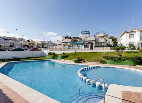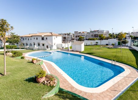 3 Bedroom Townhouse for Sale in Lago Jardín II, Los Balcones – Costa Blanca This attractive 3 bedroom, 1 bathroom townhouse is located in the popular Lago Jardín II development in Los Balcones, Costa Blanca. The property is offered for sale in good condition and is sold unfurnished. On the ground floor, the property comprises a bright lounge/dining area, a newly fitted open-plan kitchen, one double bedroom, and a shower room. The first floor offers two further double bedrooms and access to a private rooftop solarium, ideal for enjoying the Spanish sunshine. Externally, the property benefits from a front terrace/garden area and access to a fantastic communal swimming pool, along with well-maintained communal areas. Ideally situated, the property is just a few minutes’ walk from local amenities, less than a 10-minute drive to the beach, approximately 10 minutes from four championship golf courses, and only 45 minutes from Alicante Airport.