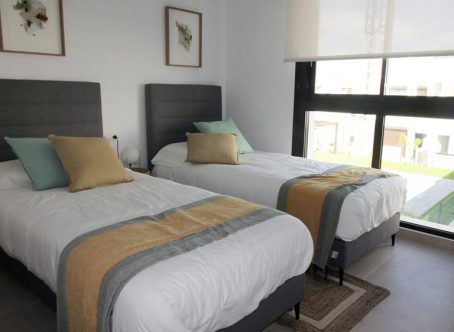 <strong>SPECIAL OFFERS APPLY - contact us for more information. </strong> An opportunity to buy a three bedroom three bathroom townhouse which is ready in the summer of 2026, so not long to wait. Located in the bustling town of Pilar de la Horadada which has some lovely bars and restaurants and all the amenities you could need and only a 12 minute bike ride to the beach. The three bed model has a terrace from the road where you have space for a car and another terrace that looks over the communal pool with jacuzzi. The downstairs consists of an open plan kitchen which comes with white goods and you have a choice of colours for the kitchen units. The lounge has patio doors to one of the terraces and there is also access from the kitchen to the other terrace. There is also a downstairs bedroom and bathroom. Upstairs there is another double bedroom, a family bathroom and a master bedroom with ensuite. The master has patio doors to the terrace, all the bedrooms have fitted wardrobes and the bathrooms have underfloor heating. Up external stairs and you will find the 48m2 roof solarium with a summer kitchen. There is a four bedroom corner townhouse available too. Contact us to arrange to view