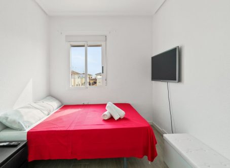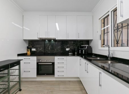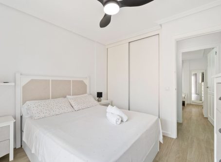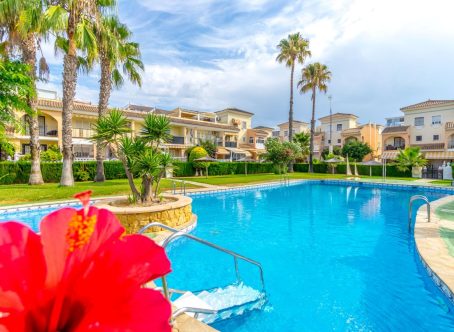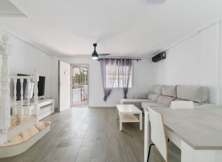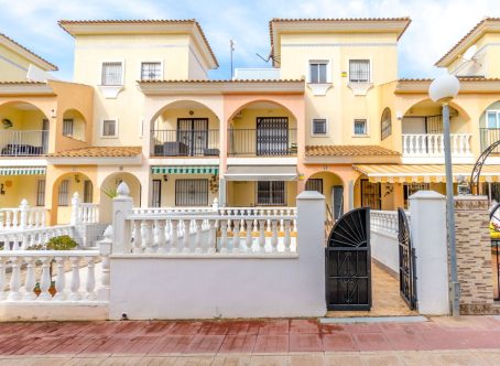 A 2 bed 1 bath quad house with a private rooftop solarium located in Laguna III, Playa Flamenca, Costa Blanca. We are delighted to present this fully renovated and spacious townhouse, ideally located on the popular Laguna II residential complex in the sought-after Horizonte area of Playa Flamenca. Situated within a secure, gated community, this impressive 98m² property offers three bedrooms, one full bathroom, a guest toilet, a generous living/dining area, and a separate fully equipped kitchen with an adjoining utility area. The home boasts an abundance of outdoor space, perfect for enjoying the Spanish climate. From the living room, patio doors open onto a raised terrace, which leads down to a low-maintenance private garden. The master bedroom benefits from its own private terrace with views over the communal pool, while the top-floor solarium also enjoys pool views and all-day sunshine - an ideal space for relaxing or entertaining. From the kitchen, there is direct access to a large underbuild garage, providing secure parking and excellent storage space. The property is set within a well-maintained, gated community featuring beautiful communal gardens and a swimming pool. Offered fully furnished and equipped with air conditioning, this turnkey home is ready to move into immediately. This property is located just a few minutes walk from the Citrus Centre & the Playa Flamenca Commercial Centre where you will find numerous supermarkets, shops, bars and restaurants etc. Beautiful golden sandy blue flag beaches are nearby at Playa Flamenca beach (700m) & also at Punta Prima, La Zenia and Cabo Roig. There is also as a good bus service, (every 30 minutes), linking the area with all the main coastal areas such as Torrevieja and Alicante to the North and Cartagena and the Mar Menor to the South. Shopping: Zenia boulevard shopping mall is less than a 5 minute drive from the property. The Murcia International Corvera airport is 35 minutes drive & Alicante airport is 50 minutes drive. Contact us today for further information or to arrange a viewing.