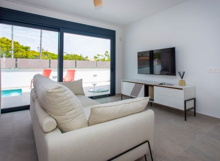 <strong>SPECIAL OFFERS APPLY - contact us for more information.</strong> Stunning three bedroom two bathroom one level villas in the quaint village of Sucina that has some great bars and restaurants and all the amenities at your fingertips. Located close to Hacienda Riquleme Golf Resort and just 25 minutes drive to the Murcia Airport and 20 mins drive to the beach. These villas have a large 36m2 bright open plan lounge kitchen diner with patio doors to the garden where you will find a 5 x 2 metre pool. There are two wings either side of the lounge, the master wing has an almost 15m2 bedroom with ensuite bathroom. In the other wing are two double bedrooms and a further bathroom. All the bedrooms have fitted wardrobes and patio doors to the garden. To the side of the property are two little rooms, one for the washing machine and storage and the other has pre-installation for a guest toilet which would be ideal for use when in the garden and pool. On the roof is a large solarium which has pre-installation for a summer kitchen island and also for solar panels. There is also pre-installation by the drive for electric charger. Contact us to arrange to see the showhome, we would love to hear from you.