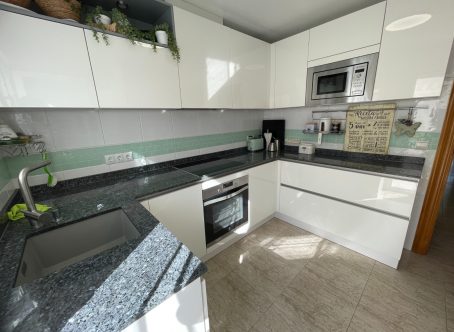 Three Bedroom Renovated Townhouse in Torre de la Horadada, Costa Blanca South This beautifully renovated three bedroom townhouse is situated in Torre de la Horadada, just a 15-minute walk from its pristine beach. Located in a charming Spanish setting close to the town square, marina, bars, supermarket, and restaurants, the property also benefits from proximity to Pilar de la Horadada. Lo Romero Golf and the Orihuela Costa, including La Zenia Boulevard shopping centre, are just a 10-minute drive away. Renovated to an exceptional standard in 2023 by an interior designer, the 85m² home is set over two floors. The spacious entrance terrace is enclosed with glass curtains overlooking the pool, creating a perfect all-year-round relaxation and dining area. Inside, the lounge features a log burner with a stylish surround, a feature wall, ceiling fan, and a dedicated dining space. The separate fitted kitchen provides access to the rear tiled garden. The ground floor also includes a double bedroom with ceiling fan and a modern family shower room. The first floor comprises two further double bedrooms, both accessing a closed-in terrace currently used as a sitting room, along with another contemporary family shower room. A private solarium offers additional outdoor space to enjoy the sun.