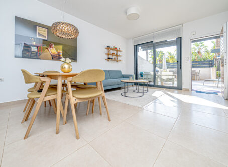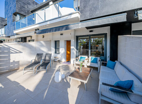 This well-presented townhouse in the desirable Los Dolses area is set across three levels, combining modern design with practical living. The main floor features a bright open-plan living and dining area, a contemporary kitchen, and an adjoining utility room with a fitted roof. From the living room, enjoy direct access to a terrace with an electric awning. The property comprises three double bedrooms and three bathrooms. A spacious underbuild, equipped with heating cables, extra air conditioning, and direct garage access, is currently used as an additional living room and bedroom, offering versatile living options. Steel railings have been added along the stairs for safety. Outdoor spaces include a private solarium, terraces overlooking the communal pool, and landscaped green areas within the community. Conveniently located within walking distance of supermarkets, cafés, and restaurants, with La Zenia Boulevard shopping centre just a short bike ride away. The Blue Flag beaches of Orihuela Costa are only a few minutes by car or a pleasant walk. Playa Flamenca is a sought-after coastal resort with beautiful beaches, a relaxed Mediterranean lifestyle, excellent amenities, scenic cycling and walking routes, and nearby golf courses. Alicante and Murcia airports are both accessible in under an hour. A well-maintained property in a prime location - contact Inmo Investments today to arrange a viewing.