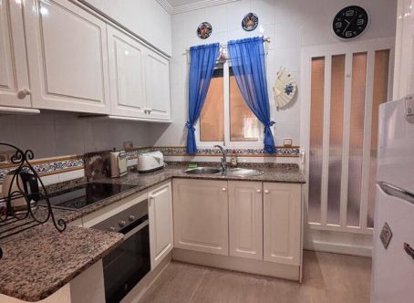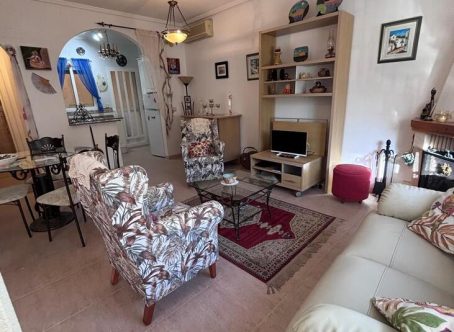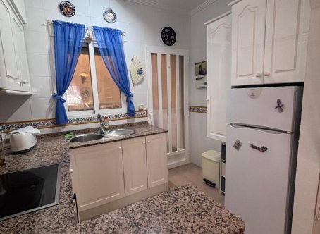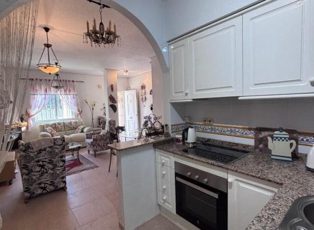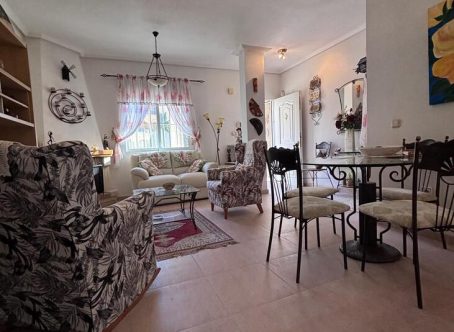 Charming 2-Bedroom Townhouse in Villamartin This lovely two-bedroom townhouse is located within a secure gated community in the highly sought-after Villamartin area. The property features a front terrace that enjoys the morning sun, ideal for relaxing with a coffee or breakfast outdoors. Inside, a welcoming entrance hall leads to a spacious open-plan lounge, dining area, and kitchen, creating a bright and sociable living space. The kitchen opens onto a private rear terrace and connects to a practical utility room. On the ground floor, there is also a modern shower room for convenience. Upstairs, there are two generously sized double bedrooms with fitted wardrobes and a family bathroom. The main bedroom has direct access to a private terrace, perfect for enjoying the sunshine. Residents benefit from a beautiful communal swimming pool, and the property is conveniently close to local amenities, golf courses, and beaches. This charming townhouse is ideal as a permanent residence or holiday home.