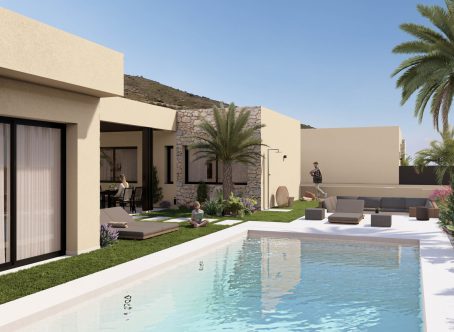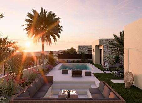 <strong>SPECIAL OFFERS APPLY - contact us for more information. </strong> We are excited to offer for sale these stunning ENERGY EFFICIENT four bedroom, three bathroom villas which are situated on the desirable Altaona Golf and Village Resort. These single storey villas are built using the innovative SISMO building system and the walls and ceilings are thermal insulated, they have underfloor heating in the living room and bathrooms and air renewal system in kitchen, bathrooms and utility. The roofs are covered with plants which will help insulate the house and they have a rainwater collection system and the collected water is used to drip irrigate the gardens and roofs. These amazing villas have a large open plan living, kitchen and dining area. The kitchen has upper, lower and countertop furniture with a wall unit and island unit. The worktop is made of natural and or compressed stone. The sink with mixer tap, extractor and electric induction hob are included. Full ducted hot and cold aircon is installed. There are 4 double bedrooms all with fitted wardrobes, the master having a twin dressing room and ensuite bathroom. There is also a guest toilet. Each villa has landscaped gardens and individual private swimming pools. Clients can have optional extras such as solar panels, white goods, electric charging point and extra storage. Please contact us for more information.