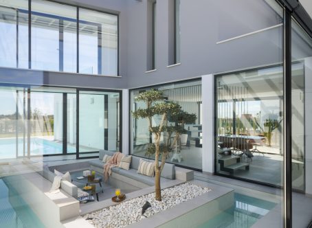 <strong>SPECIAL OFFERS APPLY - contact us for more information. </strong> A stunning brand new four bedroom, four bathroom frontline golf villa overlooking the 2nd hole at Altaona Golf and Country Village and just a short walk to the clubhouse. The contemporary style villa has numerous design features including an internal courtyard with sunken lounge area and a 40 sqm swimming pool with waterfall. The ground floor offers open plan living with modern kitchen, sliding doors to the rear garden and two bedroom suites. On the first floor there are two further bedroom suites with private terraces overlooking the garden. Depending on stage of construction, there is a possibility for an under-build or to modify the design to suit your needs (extra costs may be incurred). Altaona Golf and Country Village has a brand new golf course, clubhouse and entrance, plus other new facilities to be opened soon. The resort is situated next door to El Valle Golf resort, 10-15 minutes from Murcia City and 15-20 minutes from the beach. The new International airport is less than 10 minutes drive. Contact us to arrange a tour of the resort.