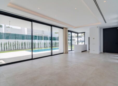 Modern luxury detached villa in a fantastic location, bordering a protected nature reserve and within walking distance of shopping centres and other amenities. Villa Monte Biarritz is situated near Marbella, Benahavis and Puerto Banús and within easy reach of several golf courses. New construction with modern qualities and finished to a high standard. Facing south this villa has the best orientation for sun and is on a quiet dead end street but at the same time you can walk to the supermarket, restaurants or even the golf club. Top quality has been used in the bathroom fittings and a modern designed kitchen with top brands and with large floor tiles which gives the villa a distinct look. You must see this in person to apprecuate the quality. THE DESIGN: The villas offer a modern choice of architectural design with a lot of natural light solutions, which perfectly fits them within the permanently modernizing neighbourhood and the green environment. THE QUALITIES: The interior spaces have been attentively planned to offer comfort and quality to the new home owners. The main focus was made on the use of the well known innovative design, high tech features and unbeatable quality of "Porcelanosa" materials, which is today a major reference in both the Spanish and the International market. THE APPLIANCES: Not only do "Bosch" appliances fit seamlessly with any kitchen but the performance and reliability of its high-quality products also perfectly complement its users daily routines. We chose "Bosch" for its features and functions, which make every day easier and more enjoyable. THE COMFORT: Although we have one of the world´s best climates, winters can also get sometimes a little chilly. Our villas offer an under floor heating solution throughout the ground floor and the first floor level, which creates an effortless cozy barefoot winter feeling and undeniable modern luxury extra to the new style home.
